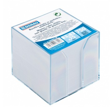 Kostka papierowa Donau mix kolorów, 750 karteczek 83x83 mm w przezroczystym pojemniku. Nieklejone, trwałe i praktyczne, idealne do biura, domu i szkoły.