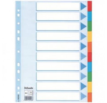 Kolorowe przekładki Esselte A4 z kartonu 160 gsm to trwałe i ekologiczne rozwiązanie do segregatorów. Zestaw 10 przekładek z indeksami 1–10 ułatwia porządkowanie dokumentów w biurze, szkole i domu.