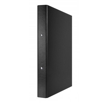 Segregator ringowy Donau A4 20mm w kolorze czarnym. Wykonany z tektury i ekologicznej folii PP o strukturze płótna. Wytrzymały, stylowy i zgodny z zasadami recyklingu – idealny do biura i domu.