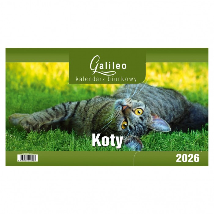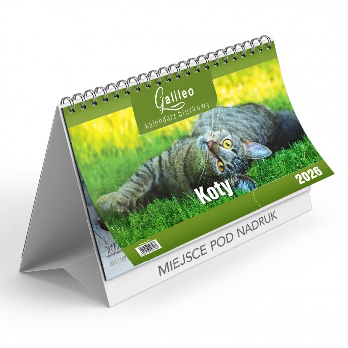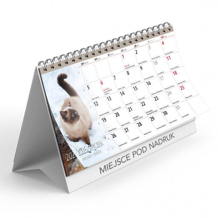 Kalendarz biurkowy, stojący, w układzie miesięcznym.