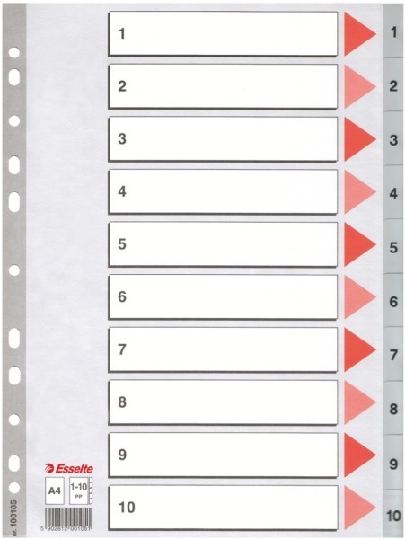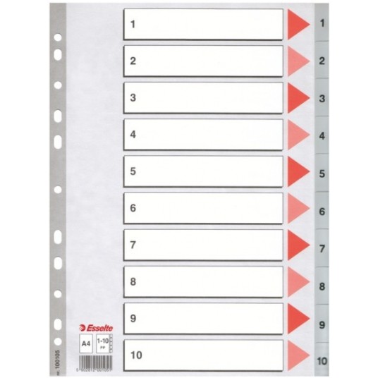 Przekładki w kolorze szarym. Wierzchnia karta z wydzielonymi, dużymi powierzchniami na opisy.