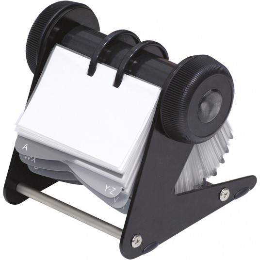 Wizytownik wyposażony jest w 24 przekładki alfabetyczne A–Z, które ułatwiają sprawną segregację danych kontaktowych. 200 przezroczystych koszulek o wymiarach 66 × 103 mm pozwala bezpiecznie przechowywać wizytówki, chroniąc je przed zagnieceniem i zabrudzeniem. Mechanizm obrotowy zwiększa ergonomię pracy i sprawia, że wyszukiwanie odpowiedniej wizytówki zajmuje tylko chwilę.✔️