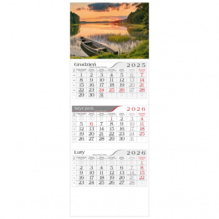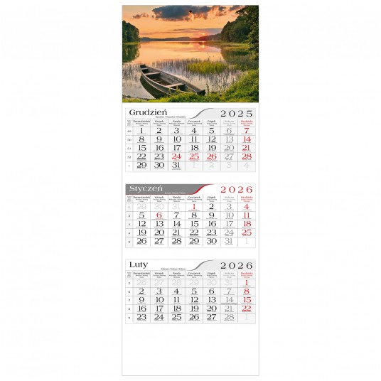 KALENDARZ TRÓJDZIELNY STANDARDOWY wymiar całkowity 295 x 800 mm pasek z okienkiem