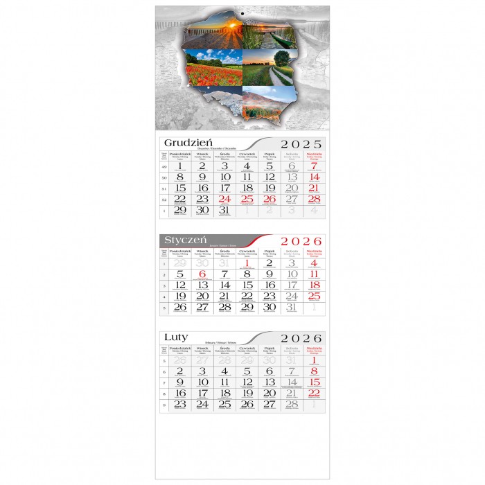 PL, GB, D, RUS z numeracją tygodni i polskimi imionami
