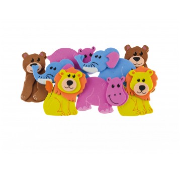 Naklejki z pianki Brewis PVC35, zestaw 8 sztuk w kształcie kolorowych zwierzaków. Samoprzylepne, lekkie i trwałe, doskonałe do zabawy, dekoracji i prostych projektów edukacyjnych.
