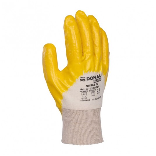 RĘKAWICE ROBOCZE NITRILE 02 kat.II żółte 9 – L marki Donau Safety to wysokiej jakości środki ochrony indywidualnej stworzone z myślą o intensywnej pracy w wymagających warunkach. Wykonane z trwałej dzianiny bawełnianej, powleczone w ¾ warstwą żółtego nitrylu, zapewniają doskonałą przyczepność oraz odporność na ścieranie. Idealnie sprawdzają się przy pracach mechanicznych, transportowych, serwisowych, przemysłowych i rolniczych. Dzięki elastycznemu ściągaczowi rękawice dobrze przylegają do dłoni, gwarantując komfort i bezpieczeństwo podczas długotrwałego użytkowania. Są odporne na działanie olejów i wody, co czyni je doskonałym wyborem do pracy w środowisku mokrym lub zaolejonym. ⭐️