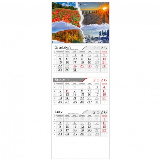 Kalendarz trójdzielny Crux Cztery Pory Roku to funkcjonalne i estetyczne rozwiązanie, które doskonale sprawdzi się w biurach, firmach oraz przestrzeniach usługowych. Standardowy format trójdzielny umożliwia jednoczesny podgląd trzech miesięcy, co znacząco ułatwia planowanie spotkań, terminów i zadań. Całość została zaprojektowana z myślą o czytelności i wygodzie codziennego użytkowania, a motyw czterech pór roku nadaje kalendarzowi uniwersalny i ponadczasowy charakter.⭐️