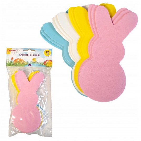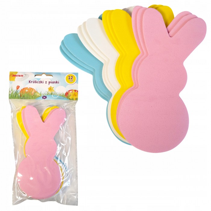Króliczki wykonane z pianki PVC w sześciu kolorach: biały, żółty, różowy, fioletowy, jasny niebieski, niebieski. Elementy idealne do wykonywania wszelkich prac dekoratorskich, kartek, albumów, zaproszeń, różnego rodzaju prac plastycznych. Świetny produkt dla dzieci do artystycznego tworzenia.