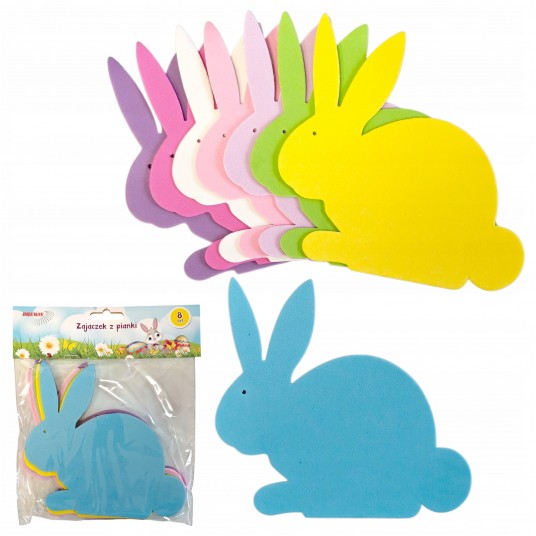 Króliczki wykonane z pianki PVC w różnych kolorach.