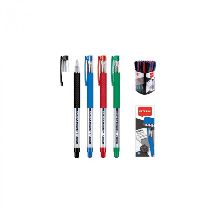 DŁUGOPIS NATARAJ GRIPPO FINE ze skuwką o ergonomicznej antypoślizgowej części chwytnej. Trwała, końcówka umożliwia prowadzenie cienkiej, precyzyjnej linii, miękki, gumowany uchwyt długopisu zapewnia wygodę nawet w trakcie wielogodzinnego notowania, grubość linii: 0,7 mm, kolor tuszu: czarny.